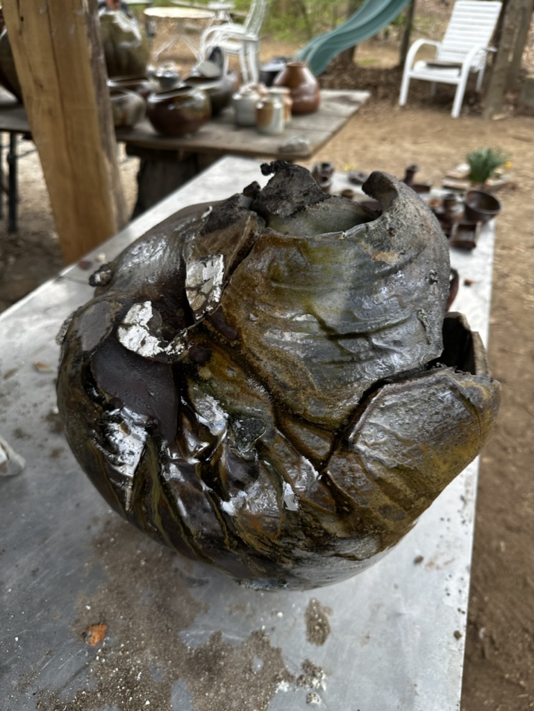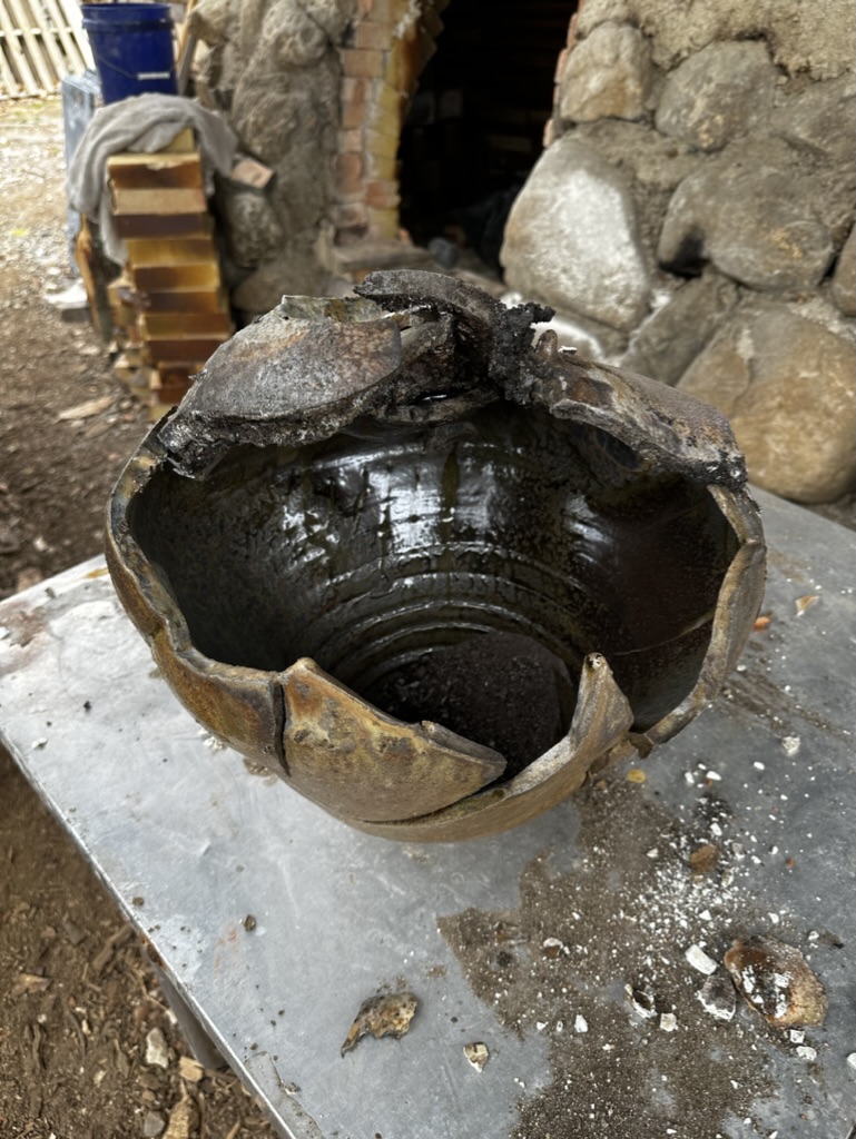 After unloading the kiln, I found that only 1 out of 2 pots had survived. The one in front of the firebox had been smashed. This was a failure, but a good one as it gave me the opportunity to create something that could protect my pots even when placed in front of the firebox, allowing me to have both an ash surface and a clean surface on one pot. The other pot, which was placed in the middle space, had a slight effect from the slit, but it was not very noticeable. I hope to place the next pot near the firebox, but with a stronger container.