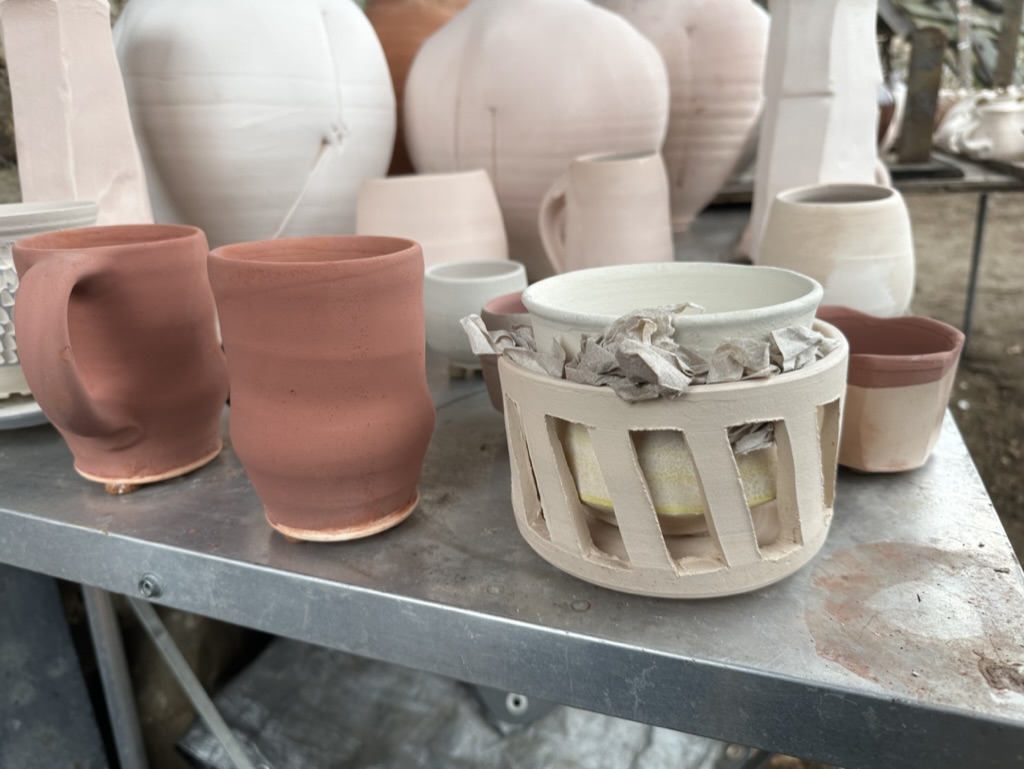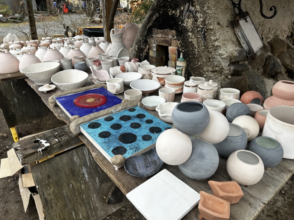 We cannot put our hands on our pots to paint them when the Anagama is at 2300°F, but I might be able to create a ceramic stencil to shape the flame. Just like Banksy sprays using a stencil on a wall, I wanted to make marks on my pots using a slitted saggar.