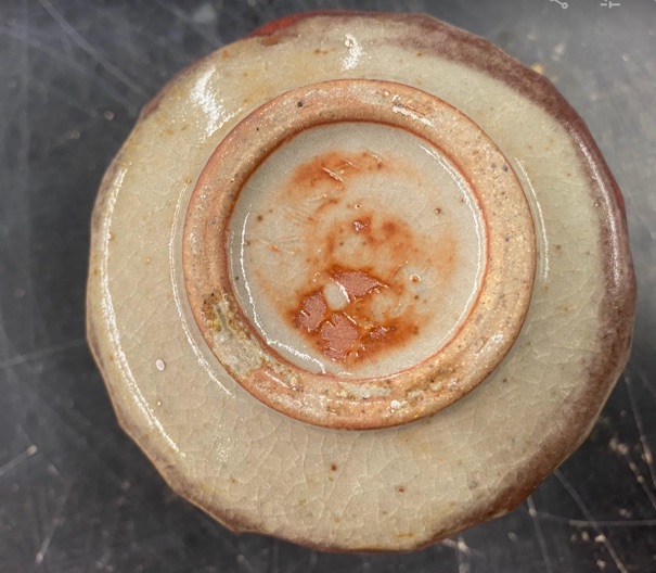 - Description: Shino glaze with Oribe / Copper Rich glaze got deep red by reduciton firing
