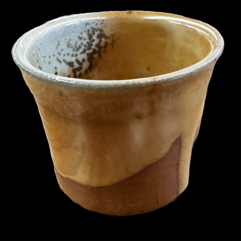 - Description: Handy Yunomi Cup for all purpose. Half covered soft shino glaze texture with carbon trap pattern inside wall.